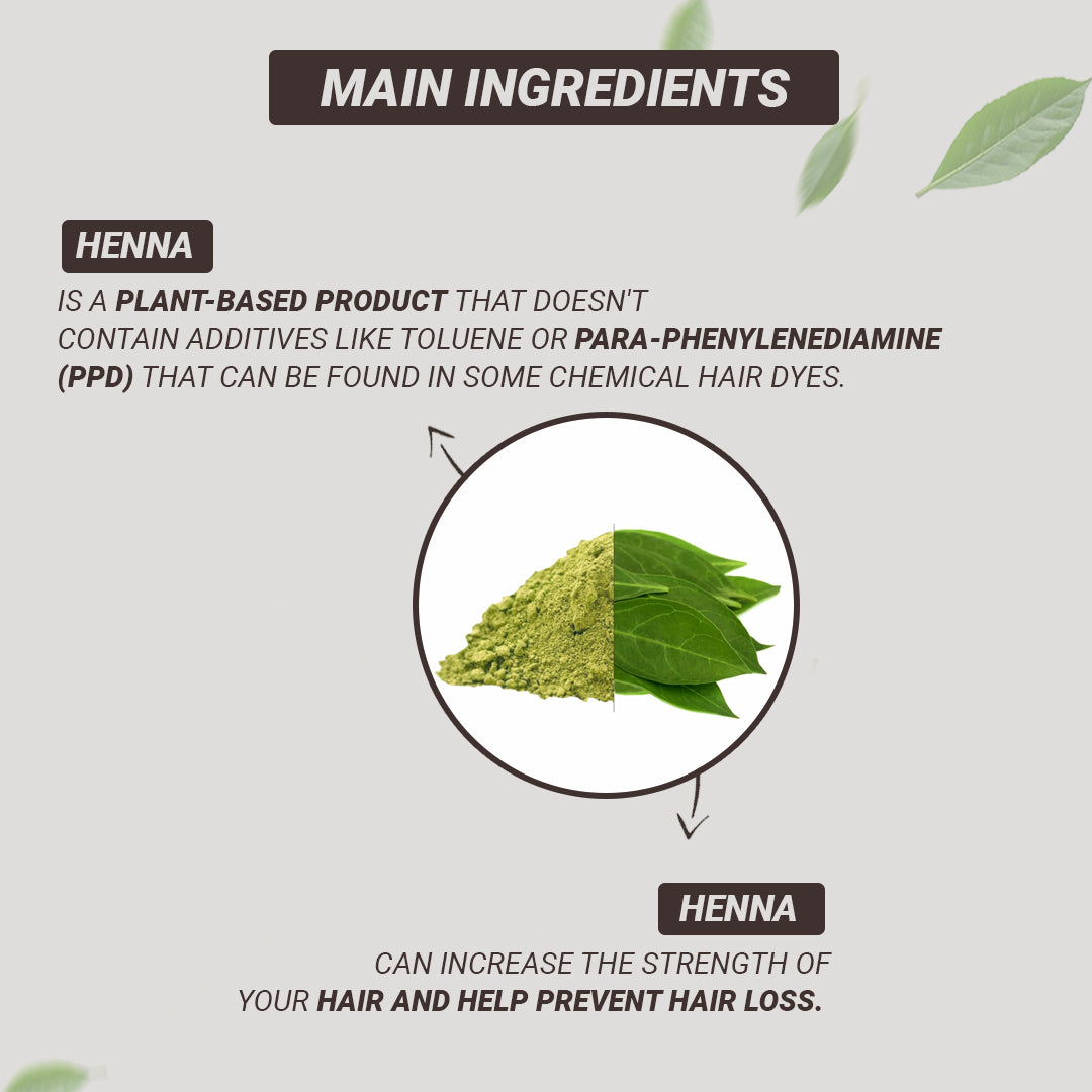 INGREDIENTS: Rajasthani Henna ,Turmeric ,Clove ,Tez Patta ,Ratan Jot, Coffee ,Black Paper ,Bhringraj , Bhrami ,Black tea, Nagkesar , Amla .